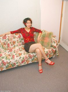 Зрелая азиатка, расположившись в гостиничном номере, начала сексуально двигать телом и оголять его. Развратница неторопливо снимала с себя вещи, оголяя свои пикантные места. Избавившись от белья, давалка покрасовалась бюстом, а затем встала на диване раком и проветрила небритую промежность.